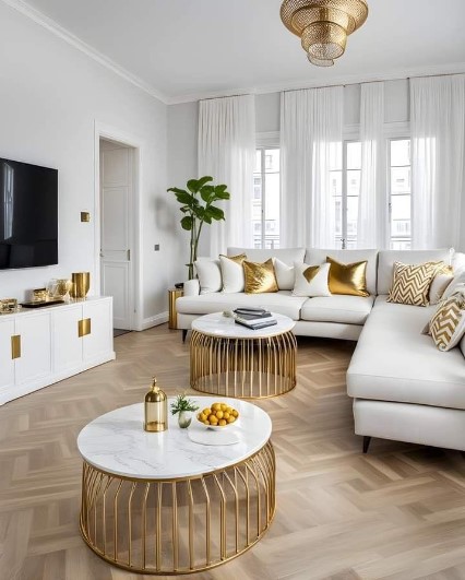 In modern design, gold decor has shifted away from the “brassy” yellow tones of the past toward more sophisticated finishes like Brushed Gold, Champagne Gold, and Antique Brass. These finishes are less about “showing off” and more about providing a soft, ambient glow that makes a room feel more expensive and well-lit. Whether it’s a delicate sunburst mirror or a heavy-duty coffee table frame, gold elements serve as the “jewelry” of the home, providing those final, shimmering touches that catch the eye and tie different furniture pieces together.