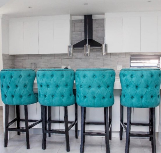The “Tufting” is not just a decorative choice; the button-pressed recesses create a structural, supportive cushion that maintains its shape and comfort over long periods. Paired with a sturdy, high-profile base, these stools offer a commanding presence that balances the “hard” surfaces of marble or quartz countertops with soft, inviting textures.